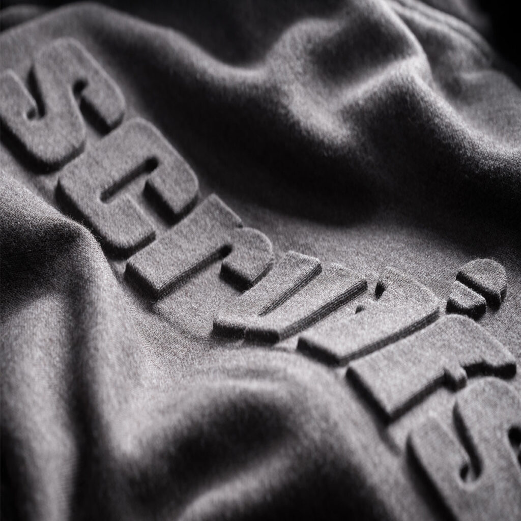 Puff printing is a special screen-print technique where the ink expands when heated, creating a raised, 3D effect on the fabric. It gives a soft, textured, and bold look that stands out—perfect for streetwear, hoodies, t-shirts, and logos that need extra style and depth.